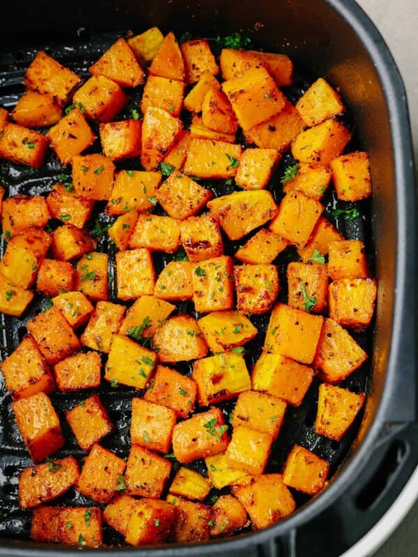 Tender golden cubes of butternut squash have sweet nutty flavors that are air fried to perfection. The comforting texture of squash is my favorite, and the spices in this recipe take it to the next level! Soft on the inside with slightly crispy edges, this air fryer butternut squash tastes oven roasted. Butternut squash is delicious as a side dish rich in vitamin A, vitamin C, magnesium, and potassium. This is a healthy and nutrient-dense dish that is equally delicious!