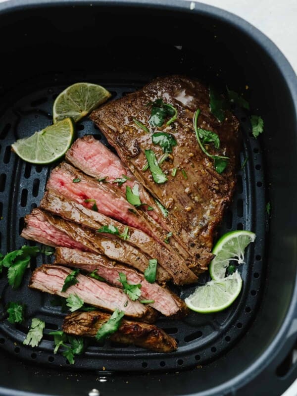 Believe it or not, the air fryer does an incredible job of cooking up things like this flank steak and making it taste worthy of your favorite steakhouse! Not to mention, itโs ready in half the time and only takes a quarter of the effort! Youโll have to try out my air fryer steak, garlic steak bites and air fryer ribeye steak next time youโre craving a quick and hearty dinner.