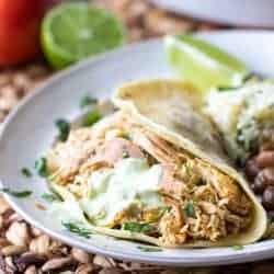 Preparing this tasty chicken only takes 5 minutes. With the amazing smell this recipe fills your kitchen with when cooking, waiting is the hardest part! The chicken is so tender, it just peels apart. That combined with its flavor makes this a winner winner chicken dinner. Garlic, ranch, cumin, and chili powder create a perfectly savory flavor with a hint of spice. My family can’t get enough of it! I serve these with simple veggies and homemade tortillas. Top them off with my cilantro ranch dressing for a creamy, flavorful wrap you’ll want to make again and again.