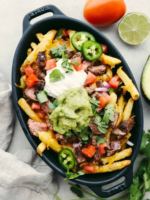Carne asada is so tender and flavorful. It’s marinated to perfection and is flavored with so many delicious seasonings! If you have leftover carne asada after you make your fries, you’ll have to try making these carne asada tacos or nachos for a delicious snack!