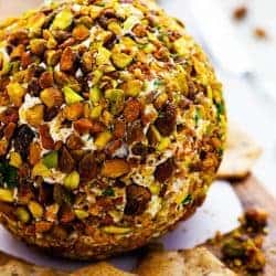 As I was deciding what cheeseball to make I noticed that all of the cheeseballs on my site have a theme to them. They all include bacon. Bacon makes everything better right? And I love me some bacon in cheeseballs. So when making this cheeseball I decided to throw all of my favorite things together and roll it in pistachios. I LOVE pistachios. I mean who doesn’t love pistachios especially around the holidays??