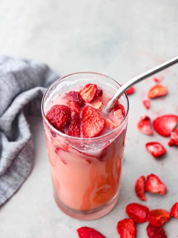 - Freeze Dried Strawberries: They use these at Starbucks too. The drink perfectly rehydrates them for you so they taste fresh and delicious.