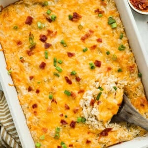 This crack chicken orzo bake is creamy, cheesy, and packed with that irresistible ranch, bacon, and cheddar “crack” flavor everyone loves. It’s an easy casserole that’s guaranteed to be a hit.