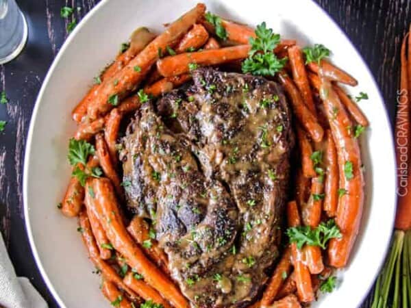 Growing up, my mom always made the BEST Sunday roasts. Sheโd sear the meat, start it at 425ยบF, then let it cook low and slow while we were at church. By the time we walked in the door, the whole house smelled like savory roast, carrots, and onions. Dinner couldnโt come fast enough.