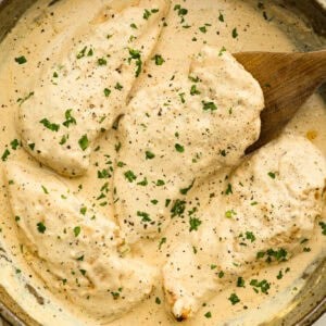 4. Coat and Serve: Return the chicken to the pan and coat it with the sauce. Season with additional salt and pepper, if needed, then serve cream cheese chicken over potatoes or rice!
