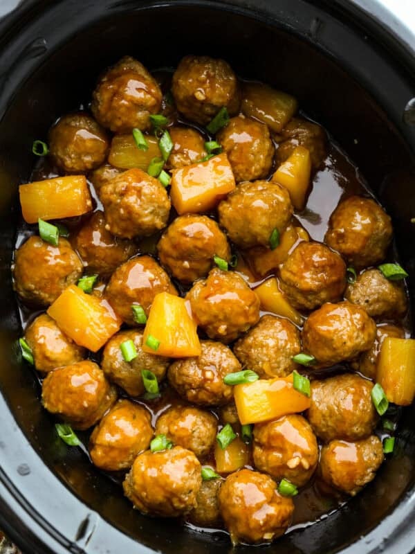 Getting dinner on the table doesn’t get much easier than this! Slow cooker Hawaiian meatballs recipe. Just toss everything in, let it cook, and come back to a saucy, flavorful meal.
