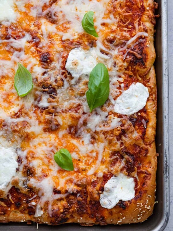 Switch up pizza night with this focaccia pizza and a few of my other favorite recipes: bubble pizza, pizza quesadillas, and Thai chicken flatbread pizza! They’re all super easy to make and SO delicious!
