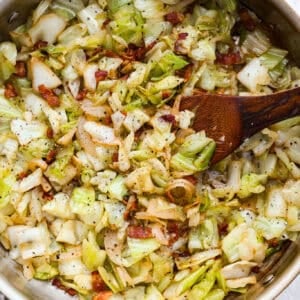 - Bacon: Frying the bacon first adds flavor to the cabbage!