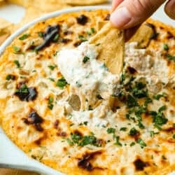 Making green chile dip is great as an after-school snack, for holiday parties, or a game day appetizer. If you like a hot dip, you can also try my Chicken Alfredo dip or my Cheesy Garlic Bread Dip. They all use simple ingredients but taste amazing!
