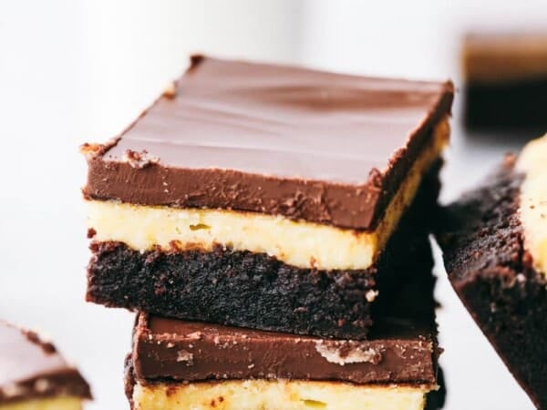 This delicious Hershey’s chocolate cheesecake brownies are layered with a moist, homemade chocolate cake, a creamy cheesecake filling topped with a thick chocolate Hershey bar layer making this irresistible. Heaven on a plate!