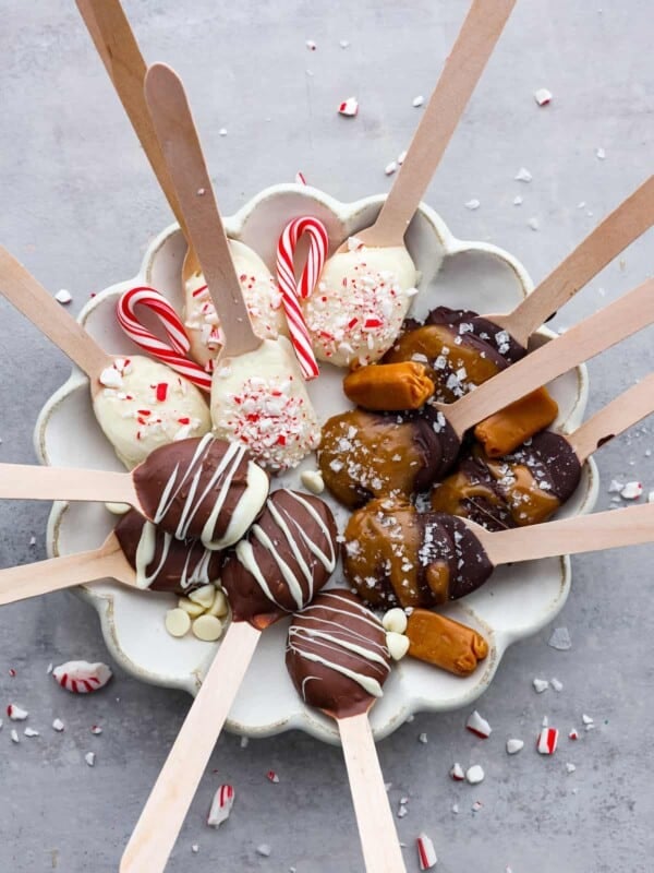 High-quality chocolate will make all the difference in how your hot chocolate spoons turn out. It will make your hot chocolate more rich, creamy, and indulgent. Ghirardelli 60% cacao is one of my favorites to work with, as well as Valrhona!