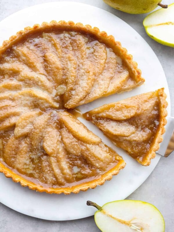 This pear tart recipe is incredibly easy to put together. Most of the work happens in the oven, so the toughest part is simply waiting for it to finish baking!