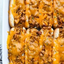 Baked to melty, golden perfection, these chili cheese dogs are layered with rich, savory chili and plenty of gooey cheese.